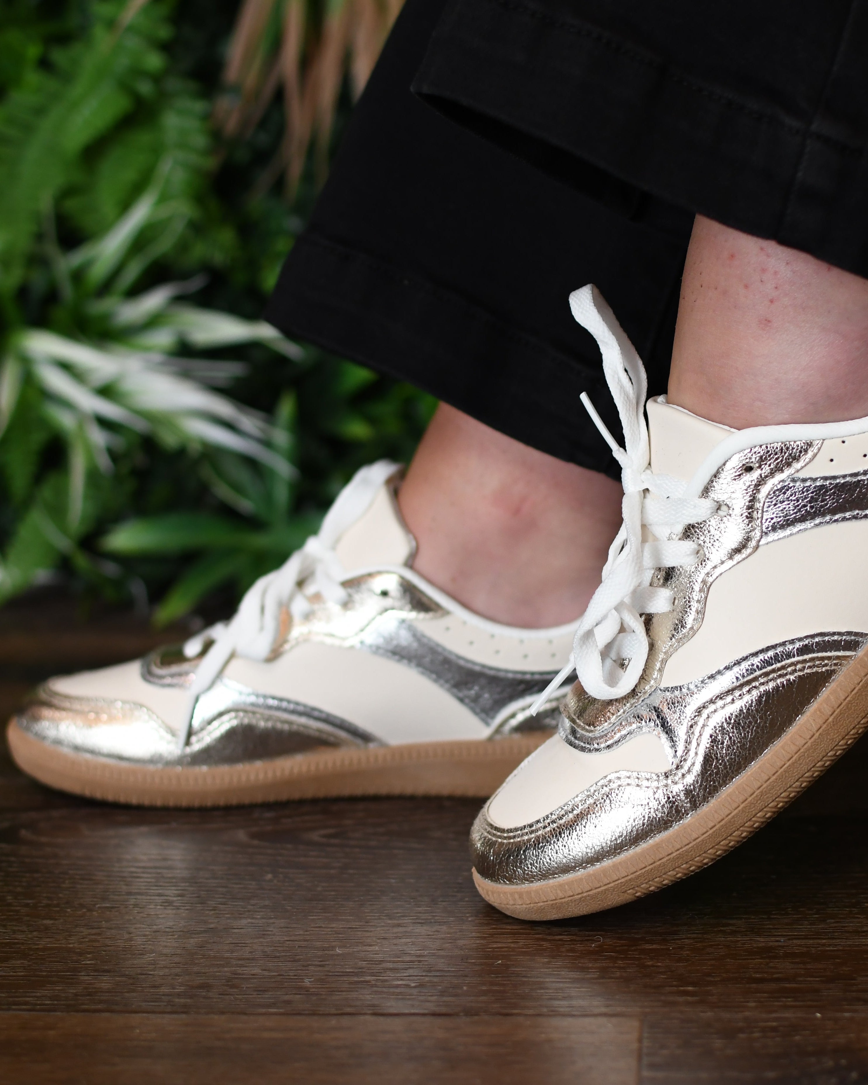 Baskets beiges et argent